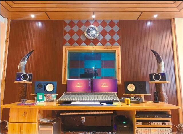 En photo : un aper?u du studio d'enregistrement de la société Tibet Guge Culture and Art Communication Co., Ltd, fondée par Ngari.