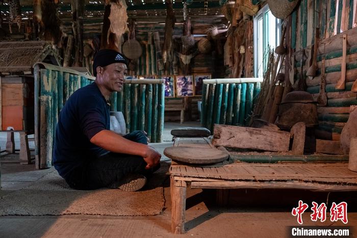 En photo : Tashi dans le musée des chasseurs créé par lui-même.