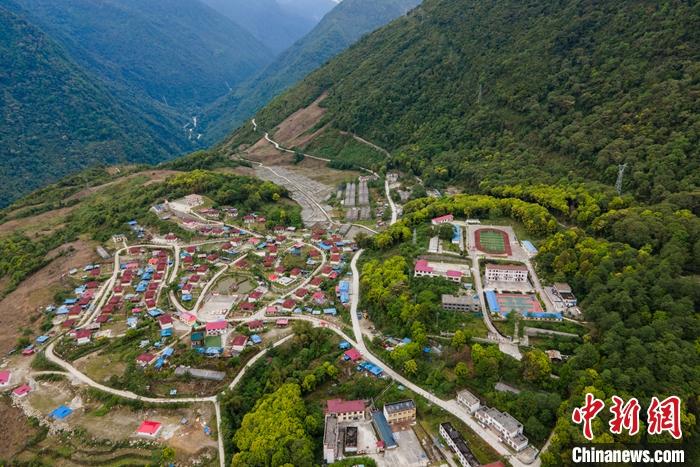 En photo : vue aérienne du village de Dagmo, canton de l'ethnie Lhopa de Dagmo, où habite Tashi.