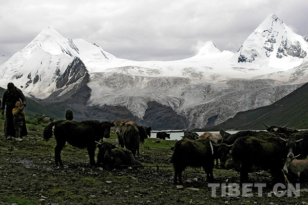 Voici un troupeau de yaks sous le glacier Sapu dans le district de Biru (Photographie par Tang Zhaoming le 10 juillet 2014).