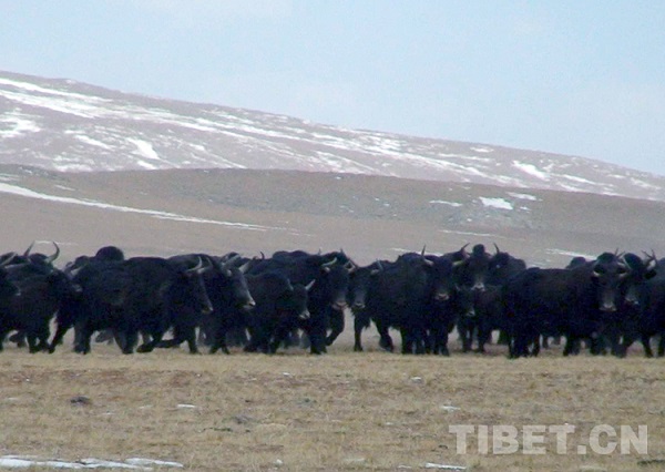 Voici un troupeau de yaks sauvages, un animal protégé national de première catégorie vivant dans la réserve naturelle nationale de Changtang (Photographie par Tang Zhaoming en 2009).