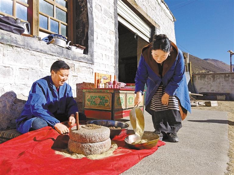 ? Lorsque je me suis marié, notre foyer dépendait entièrement de l'élevage des yaks. Mais je savais au fond de moi que si nous comptions uniquement sur cela, nous finirions t?t ou tard par être laissés pour compte dans le courant du développement de la société ?, raconte Losang tout en organisant les matières premières de l'encens tibétain sur la table de travail. Ses mains ne cessent de s'activer, tandis que ses yeux trahissent des souvenirs du passé. ? Plus tard, j'ai pris mon courage à deux mains et j'ai ouvert un petit salon de thé dans le village. C'est ainsi que la situation a commencé à s'améliorer. ?