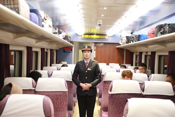 Les agents de bord annoncent les consignes de voyage en chinois, tibétain et anglais.