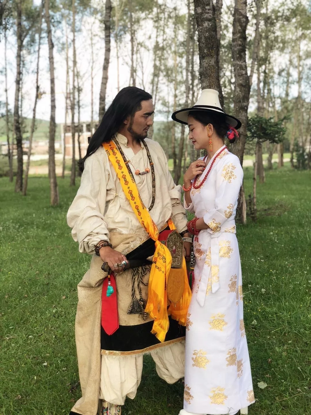 Ses longs cheveux, ses bottes tibétaines et ses habits tibétains représentent les Khampa et exhibent le style unique des hommes tibétains.