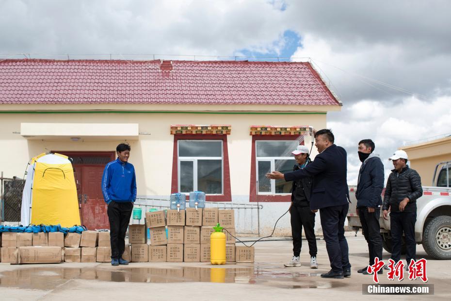 Gasong et ses collègues testent un équipement pour faire la douche offert par un enseignant du Shenzhen.