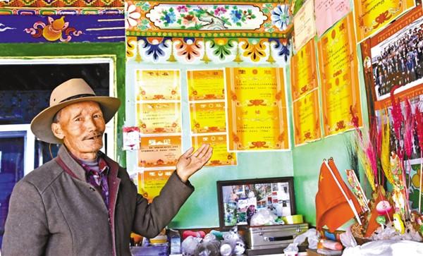 Dans cet immeuble de deux étages, le propriétaire, Raba Wangdui, cesse son travail. L'h?tesse apporte du thé au beurre. Dans le salon nouvellement décoré, Raba Wangdui a dit qu'avant, autre que l'agriculture, il n'avait pas de revenu fixe. Maintenant, après avoir déménagé ici, il s’est rapproché du canton et non seulement ses conditions de vie se sont améliorées, mais il y a plus de fa?ons de s’enrichir. Le gouvernement a également pris des dispositions pour que lui et sa femme travaillent. Ils gagnent aussi 17 000 yuans par an grace aux baux fonciers de sa maison. En outre, les dividendes annuels du collectif de village, de la centrale photovolta?que et de l’usine de meubles du canton donnent aux quatre personnes dans sa famille un revenu annuel par tête qui dépasse déjà les 10 000 yuans.