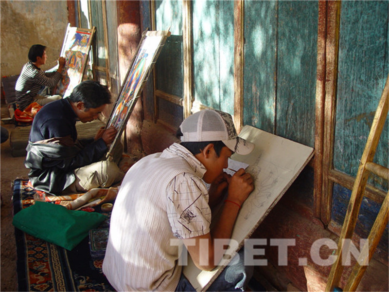 Robb Shida est un peintre de thangka aidé par 14 apprentis. Un an avant l'obtention de leur dipl?me, les apprentis ayant d'excellentes notes peuvent se rendre à sa boutique artisanale de la rue Barkhor pour peindre et vendre leurs ?uvres.