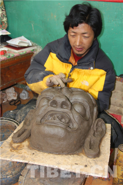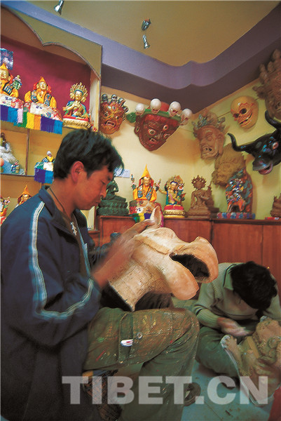 Leurs clients principaux sont les monastères qui commandent des masques pour les suspendre dans leurs locaux ou pour les utiliser dans la danse ? Qiangmu ?.