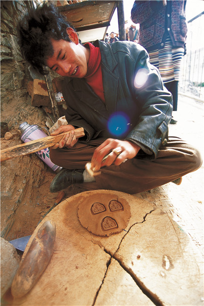 Durant la fabrication des moules de ? Caca ? (figurine de bouddha d’argile), il est généralement nécessaire d'enrober un certain nombre de grains d'orge sur le dos du moule. Ce nombre doit être singulier car les Tibétains estiment que cela porte chance.