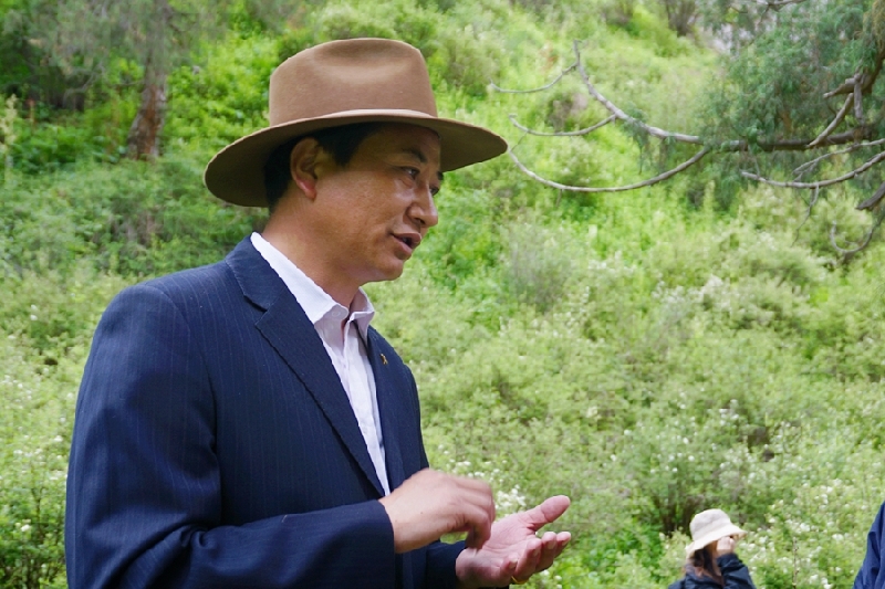 Qie Qunjia, agé de 44 ans, est originaire du canton de Hebei, dans le district de Tongde. En 1993, il a commencé à travailler et est devenu garde à la ferme forestière de Hebei. 26 ans plus tard, il est devenu directeur adjoint de la ferme forestière, dont il a vécu les nombreux changements et a été témoin de la transformation de la ferme en une terre primordiale de protection écologique.