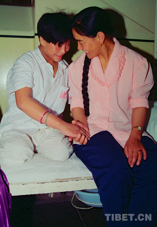 à la fin de 1994, Gama, alors commissaire adjoint du Nagqu, s'est rendue au Beijing Union Medical College Hospital pour apporter une montre (parmi d'autres) comme cadeaux d'anniversaire à Massy, l'orpheline tibétaine qui recevait un traitement pour paralysie cérébrale. Je m'y suis dépêché pour la rencontrer et l'interviewer dès que j'ai eu nouvelle de son arrivée à Pékin.