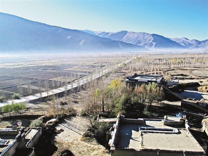 En photo : vue matinale du village de Jiuhe, dans le district de Qiongjie.
