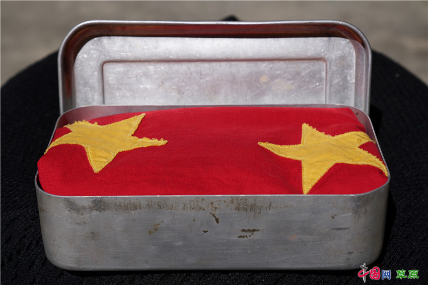 Gazhen a 54 ans. Depuis 40 ans, elle et sa famille ont déménagé trois fois grace aux projets d'aide aux subsistances comme la réinstallation des agriculteurs et des bergers. Ils sont passés d'une petite vallée froide et étroite à leur maison actuelle, chaleureuse et confortable. Pendant ces nombreux déménagements et changements de maisons, beaucoup de petits objets très précieux ont été perdus. Seule une vieille bo?te à lunch en aluminium est toujours considérée comme un trésor par la famille, car cette bo?te à lunch détient un précieux drapeau national. Cette bo?te contient également son amour à l'égard du drapeau national, un amour qui s'étend sur des décennies.