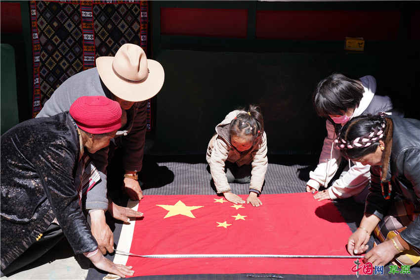 Encore une année où nous célébrons la libération du million de serfs du Tibet, et Gazhen regarde ce drapeau rouge aux cinq étoiles qui l'a accompagnée le long de sa vie affectueusement : ? Je suis dans la cinquantaine. à l'avenir, je veux confier la tache de s'occuper du drapeau rouge aux cinq étoiles à ma nièce a?née. J'espère qu'elle pourra garder et transmettre mon sentiment ! ?