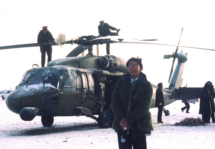 Des télégrammes express spéciaux ont été envoyés de la zone sinistrée. Ils se sont rapidement propagés de Nagqu à Lhassa, et de Lhassa à Beijing. Le gouvernement central a envoyé des avions de transport pour ravitailler à travers des parachutages de fournitures. Le 27 mars, en tant que photojournaliste, je suis monté à bord d'un hélicoptère de sauvetage pour observer l'opération. Ma caméra a enregistré les moments où l'hélicoptère a largué des nécessités telles que de la tsampa, de l'orge tibétaine, du carburant, des vêtements et des lunettes de protection contre la neige aux bergers assiégés par ces fortes chutes de neige.