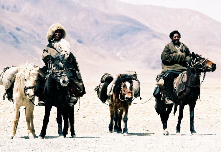 Cette photo montre un groupe de bergers à cheval dans le temps (photo prise l'été 1987 par Tang Zhaoming).