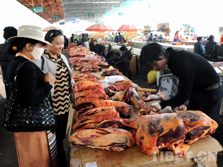 Tseqiong, un gardien de troupeaux, peut rapidement transporter chaque jour le b?uf et le mouton qu'il a découpé lui-même au marché du comté d'Amdo, ce qui lui assure un bon revenu. Sur le marché, la plupart des bergers qui apportent leurs produits d'élevage au comté et au canton de Nagqu pour les vendre, viennent au marché en navette, tout comme Tseqiong.