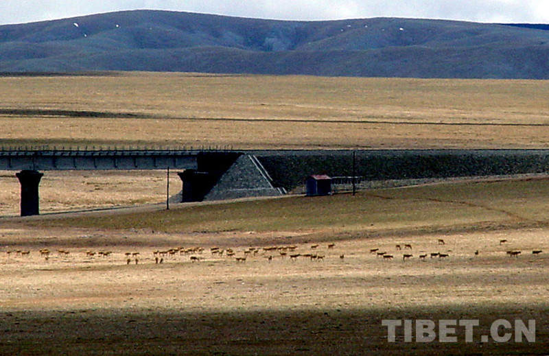 Les antilopes tibétaines qui habitent le plateau du nord du Tibet migrent à grande échelle du sud au nord sur de longues distances chaque printemps et été, et la région de Wudaoliang à la rivière Chumar est un passage incontournable. Afin d'assurer la libre migration des antilopes tibétaines, le chemin de fer Qinghai-Tibet a mis en place quatre corridors pour la faune. Parmi eux, le méga pont de la rivière Qingshui, long de 11,7 kilomètres, et le méga pont de Chumar, long de 4 kilomètres. Au lieu de construire des routes, ces deux viaducs peuvent offrir de l'espace pour les passages des animaux sauvages.