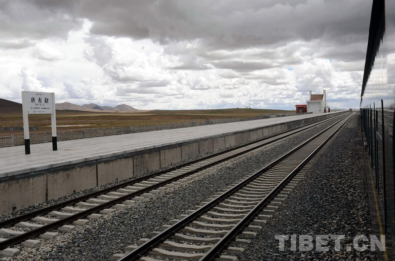 En photo : un train passant par la gare de Tanggula, la plus haute ? route du ciel ? du monde. (Photo prise par Tang Zhaoming en 2014)