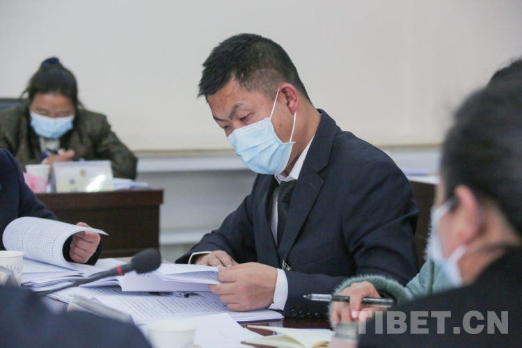 En photo : Song Jichen dans la discussion de groupe lors de la quatrième session du 11e Comité régional du Tibet de la CCPPC.