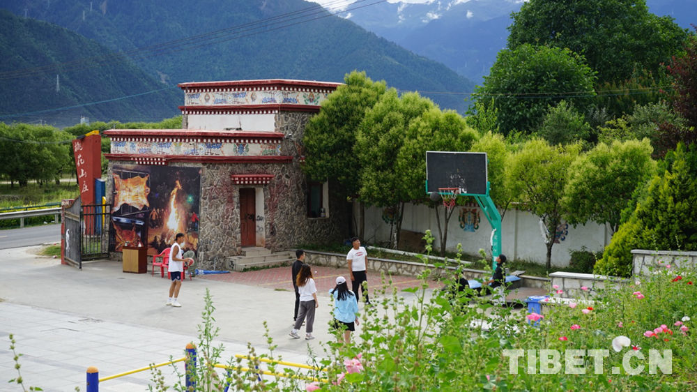 Des villageois jouant au basket avec des touristes dans le village de Gala, district de Bayi, ville de Nyingchi, dans la région autonome du Tibet.