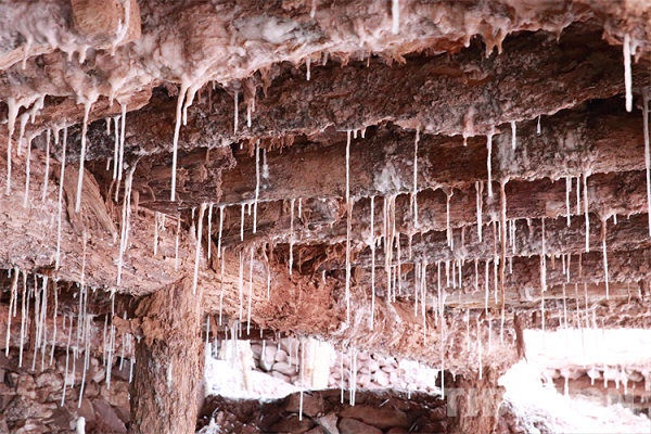 En photo : stalactites de sel suspendues au plafond d'une maison du marais salant