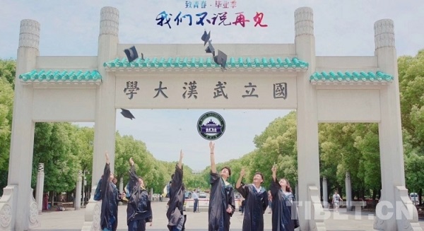 En photo : Tsering Lhagom (troisième à droite) est dipl?mé de l'Université de Wuhan.