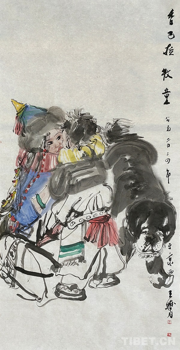 Pour Wang Fumin, peintre de l'Académie nationale de peinture de Chine, les thèmes tibétains font partie intégrante de son parcours artistique. Wang Fumin, qui a grandi dans la région de Longdong, province du Gansu, a été profondément influencé par le patrimoine culturel immatériel, riche et précieux, de l'ancienne terre du plateau de L?ss. De plus, son père était professeur d'art au collège. C'est dans cet environnement qu'il s'est engagé sur la route de l'art. Depuis plus de 40 ans, il évolue dans ce domaine un pinceau à la main.