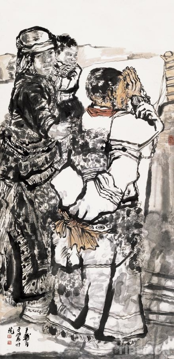 ? Ce n'est qu'en pénétrant véritablement dans la région et en découvrant la vie de la population tibétaine que les ?uvres créées sont réelles et touchantes. ? Lorsque Wang Fumin a parlé de ses idées créatives sur les thèmes tibétains, il a déclaré, ? La chose la plus attrayante du plateau Qinghai-Tibet est l'état spirituel complet des personnes qui y vivent. Nous devons vénérer la nature, respecter la culture, maintenir une émotion créative et une attitude pleine d'émotion et de respect, et utiliser l'encre de la peinture chinoise pour exprimer la vie des Tibétains, montrant l'immensité des terres enneigées et le caractère tenace et inflexible de la population tibétaine, ainsi que la relation entre l'homme et la nature. ?