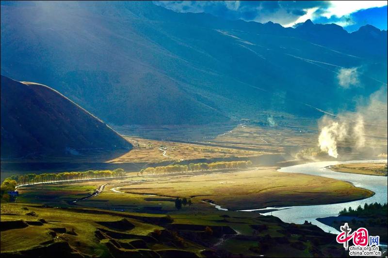 Dans une ville ensoleillée de la préfecture autonome tibétaine de Garze de la province du Sichuan – dans le comté de Garze, on peut admirer un paysage pur, que ce soit des montagnes blanches et enneigées, ou ce jaspe vert des rives de la rivière Nyakchu.