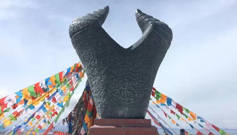 Au sommet de la montagne Cuorigaze située entre les deux lacs s’installe le fameux monument de la tête de yak (construit en octobre 1988 par le gouvernement du comté Madog qui a choisi la tête de yak comme modèle car le yak était un animal sacré aux yeux des ancêtres). C’était un endroit méritant un arrêt obligatoire pour de nombreux touristes.