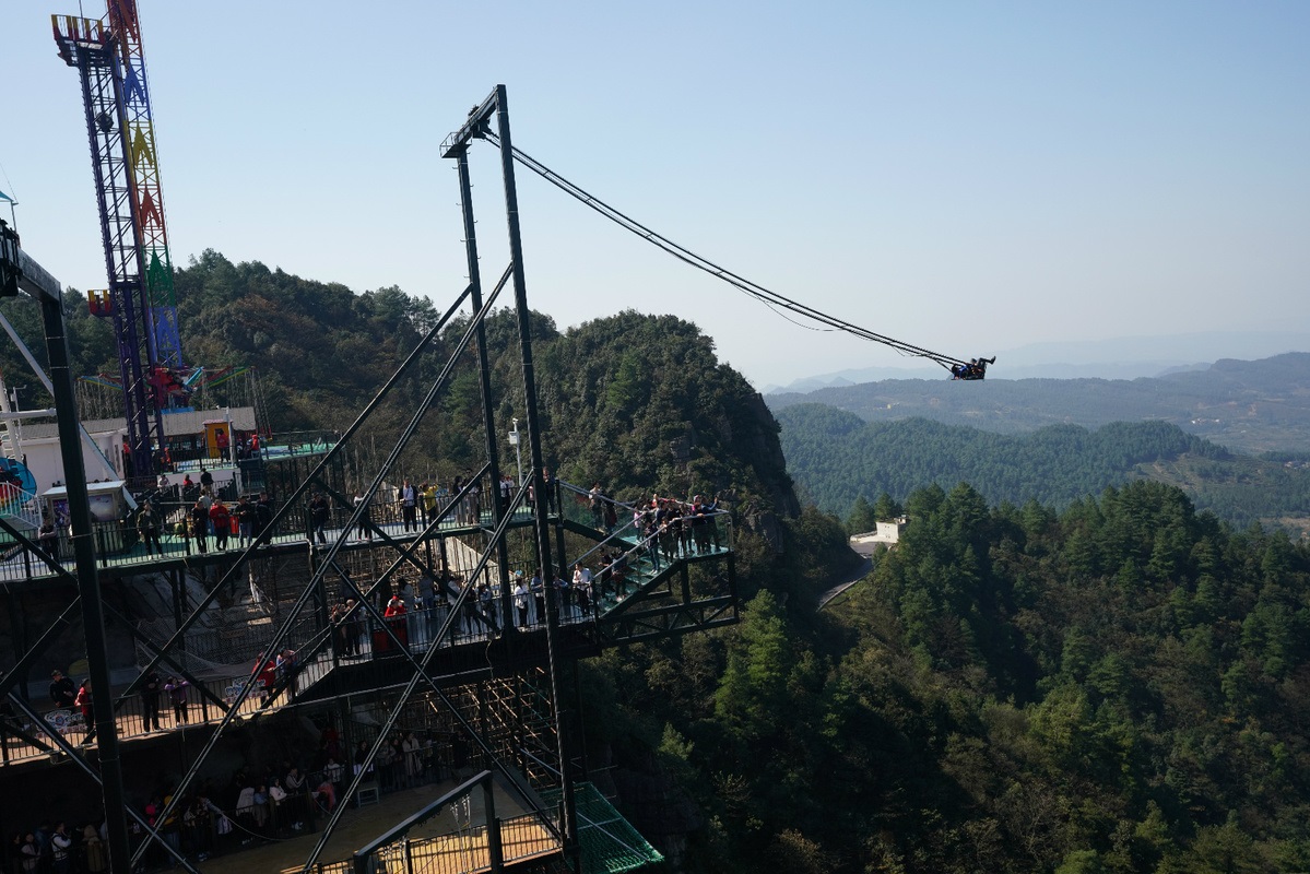 Très souvent, ceux qui veulent essayer de se balancer au-dessus d'une falaise de plusieurs centaines de mètres dans un parc du district de Wansheng, dans la ville de Chongqing (sud-ouest de la Chine), ont des doutes une fois que la balan?oire sur laquelle ils se trouvent s'élève à son point le plus haut et s'apprête à redescendre.