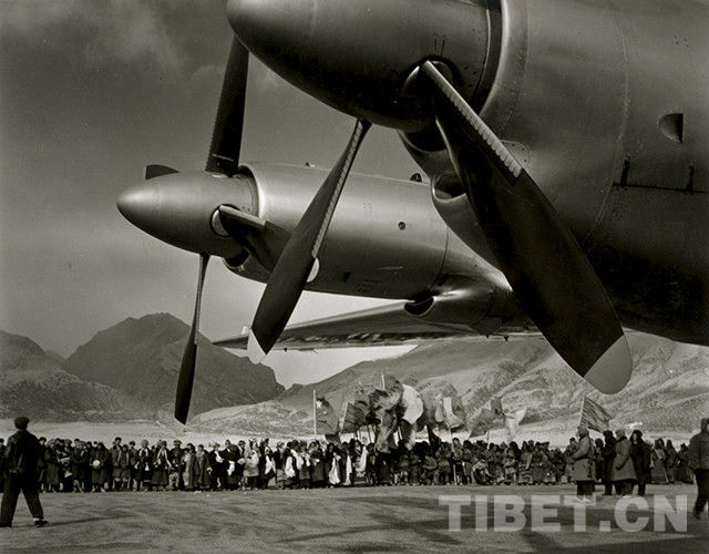 L’avion de passagers Il-18 stationné à l'aéroport de Dangxiong, le 1er mars 1965. Ce jour-là, le Tibet a été officiellement ouvert à la navigation aérienne.