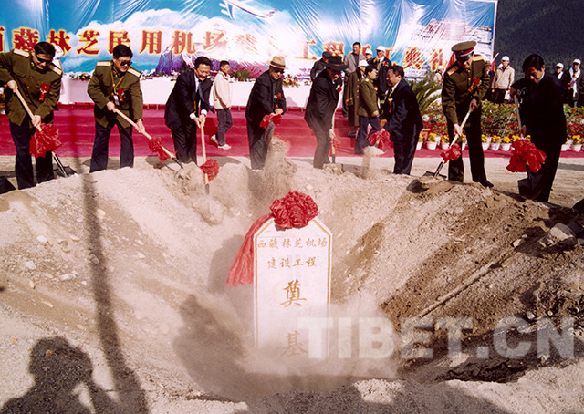 La pose de la première pierre de l'aéroport Milin de Nyingchi en 2003.
