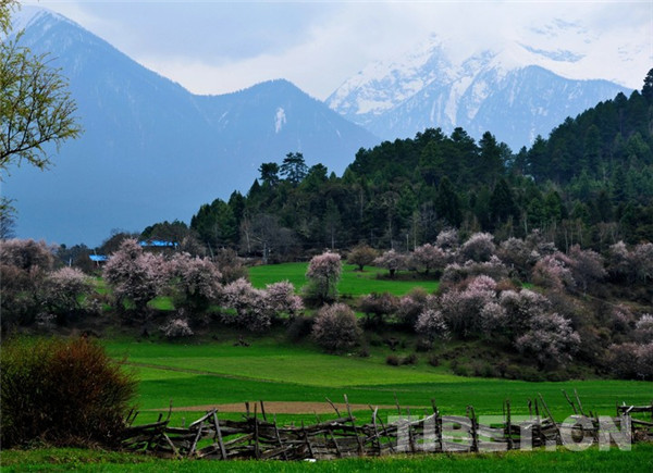 à la fin de mars et au début d'avril chaque année, de nombreux endroits au Tibet sont encore froids. Mais la ville de Nyingchi a inauguré le printemps t?t. Les montagnes et les champs sont remplis de fleurs de pêcher qui attirent d'innombrables touristes chinois et étrangers.