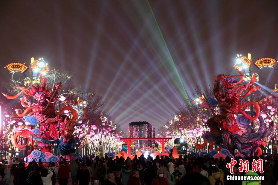 Le 14 janvier, le site de Datang Buyecheng, situé à Xi'an, est inondé de visiteurs. à l'approche de la fête du Printemps, tout le site a été éclairé de vives lumières.