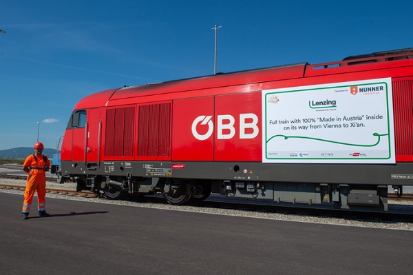 Le 20 ao?t, un train chargé de fibres chimiques pour l'industrie textile part de Vienne en direction de Xi'an. C'est la première fois qu'un train contenant des marchandises exclusivement fabriquées en Autriche quitte le pays à destination de la Chine. (Photo : Xinhua)
