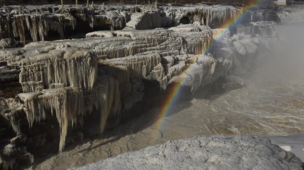 • Les touristes séduits par les paysages hivernaux des chutes de Hukou