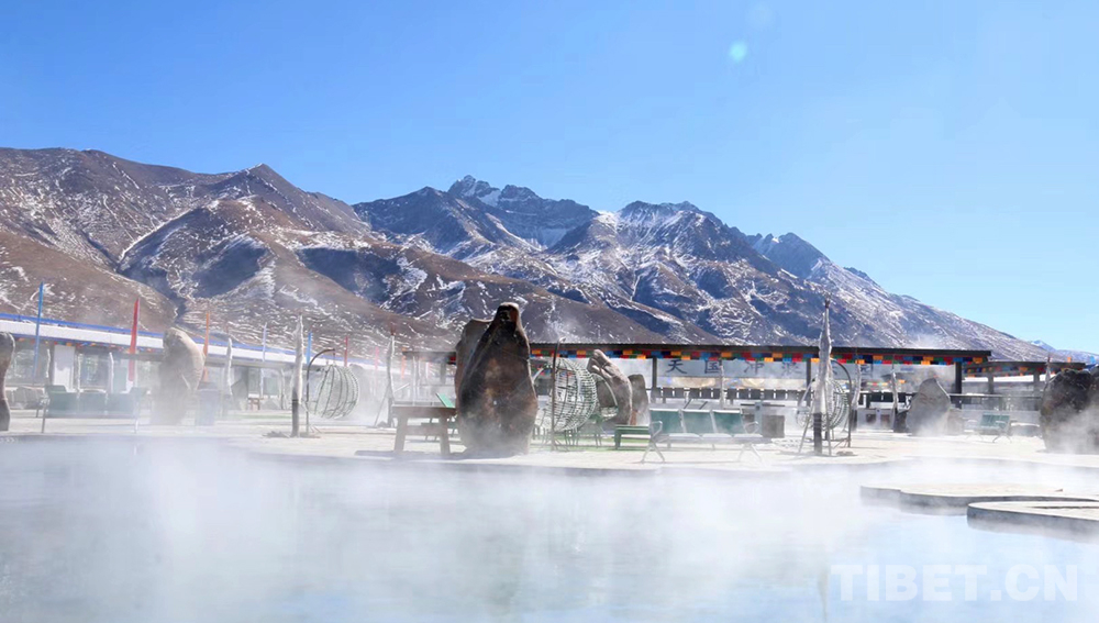 En photo : une station thermale au Tibet.