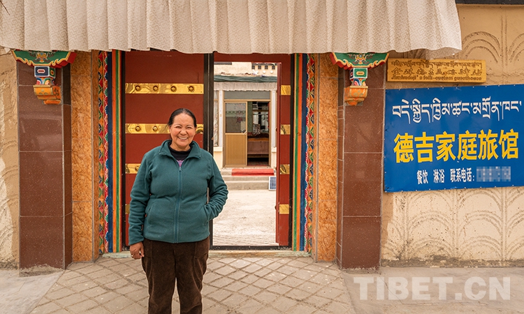 Les touristes demandaient souvent à Jingzhoi Dekyi, qui a ouvert un salon de thé sur le bord de la route en 2006, s'il y a un endroit où loger dans le village. ? Ouvrir un h?tel familial peut être pratique pour les touristes, et on peut gagner un peu d'argent. ? Ayant transformé sa maison en pisé ab?mée par les tempêtes de sable en un batiment de style tibétain propre et bien rangé de deux étages, Jingzhoi Dekyi est en affaires depuis 15 ans. En 2020, les revenus de Jingzhoi Dekyi ont atteint 100 000 yuans.