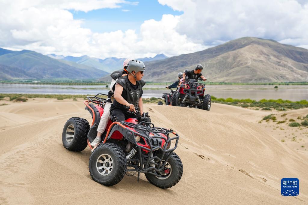 En haute saison touristique, le parc du désert de Zhanang, situé à Shannan, dans la région autonome du Xizang (ouest), attire de nombreux visiteurs avec son paysage désertique unique de plateau.