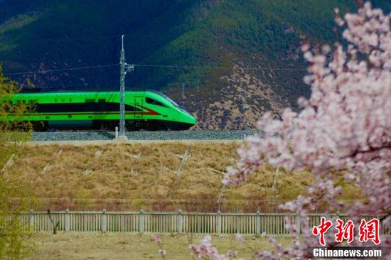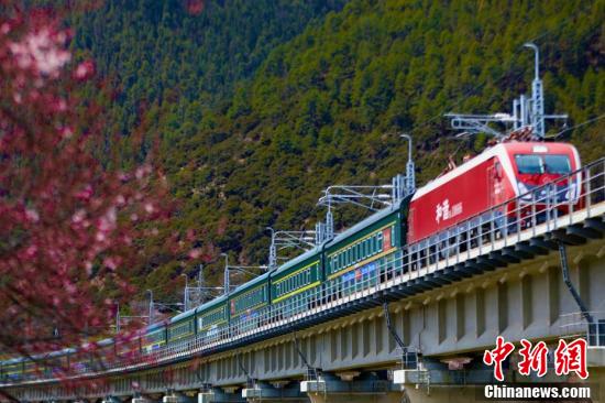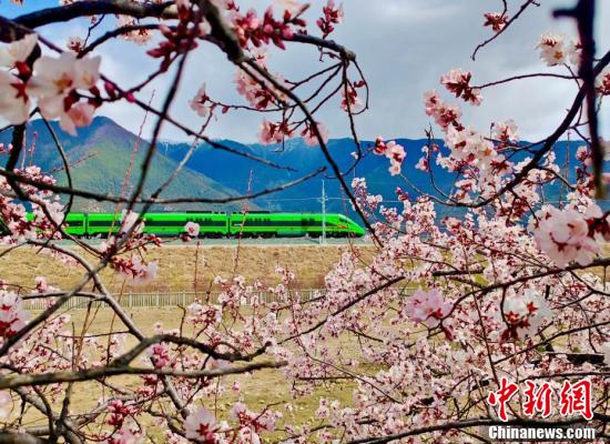 En avril, les pêchers le long du chemin de fer Lhassa-Nyingchi sont en pleine floraison. Sous le ciel bleu et les nuages ??blancs, les fleurs de pêcher rougissent et viennent compléter le tableau des montagnes enneigées au loin, attirant de nombreux touristes pour découvrir le charme unique du printemps sur le plateau. Lorsque les trains traversent la mer de fleurs, ce que vous voyez, ce sont des fleurs de pêcher partout dans les montagnes et les champs, donnant aux gens l'impression d'être dans le magnifique ? Jiangnan ?.