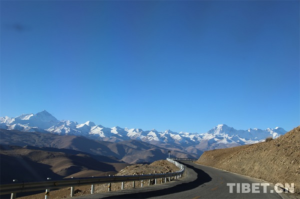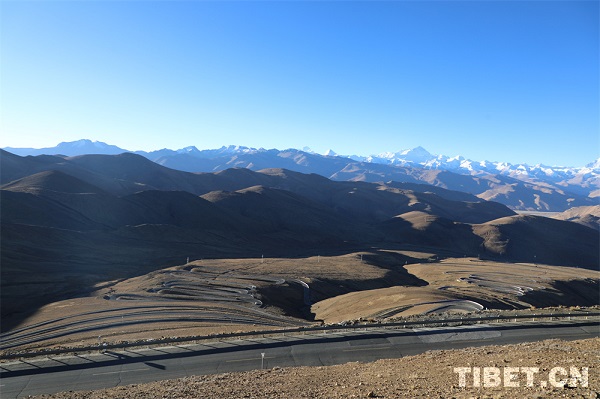 La route de Qomolangma mène au camp de base du mont Qomolangma. Elle serpente comme un gigantesque dragon au sommet des montagnes.