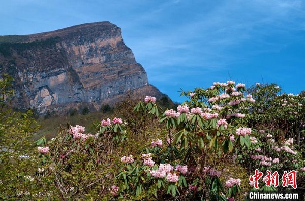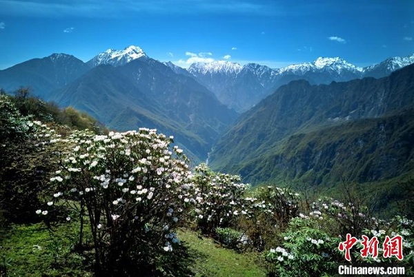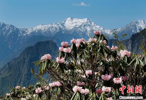 Ces derniers jours, le village de Shangyou, situé dans le canton tibétain de Huya, dans le comté de Pingwu, de la ville de Mianyang, a été le théatre d'un spectacle naturel annuel grandiose : des milles mu de forêts de rhododendrons sauvages se sont épanouis à tour de r?le au c?ur des montagnes enneigées, les branches noueuses soutiennent une mer de fleurs rose-violet en cascade, dessinant un ? tableau paysager par éclaboussures d'encre ? de haut plateau s'étirant entre ciel et terre, le site attire de nombreux visiteurs venus de tout le pays pour admirer cette scène spectaculaire.