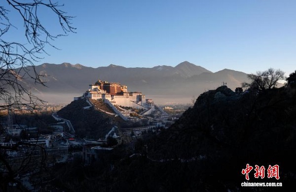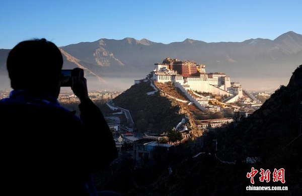 Ces derniers jours, des visiteurs ont immortalisé le palais du Potala baigné par la lumière de l'aube depuis le parc Tuanjie à Lhassa. Au début de l'hiver, sous un ciel d'un bleu profond et avec en toile de fond des montagnes ocre, le palais du Potala appara?t majestueux et grandiose, composant un splendide tableau naturel.