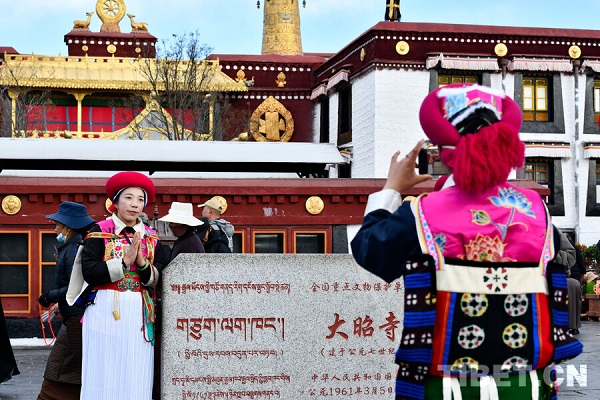 Depuis la mise en ?uvre de la huitième série de politiques préférentielles ? Voyage hivernal au Xizang ?, l'engouement pour un ? Voyage hivernal au Xizang ? ne cesse de cro?tre, attirant un flot continu de visiteurs. Récemment, des touristes originaires de la préfecture autonome tibétaine de Dêqên, dans le Yunnan, vêtus de leurs costumes traditionnels locaux, ont contribué à rendre encore plus éclatante la rue de Barkhor qui a déjà plus de mille ans d'histoire.