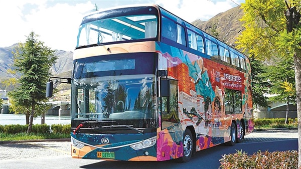 L'ensemble du véhicule adopte le rouge chinois comme identité visuelle dominante, rehaussée de motifs emblématiques tels que la grue à cou noir, des visages souriants d'enfants et le palais du Potala. Le premier niveau est aménagé en espace de services multifonctionnel, comprenant une penderie, une zone de réfrigération et un espace de travail pour les chefs ; le second niveau est dédié à la restauration et surmonté d'un toit vitré panoramique à 360 degrés, permettant aux passagers de savourer leur repas tout en admirant les paysages urbains de Lhassa. Le bus est également équipé d'un système audiovisuel professionnel et d'un espace réservé aux performances artistiques, enrichissant ainsi l'expérience du voyage. En outre, le véhicule est spécialement doté d'un système de production d'oxygène, permettant de prévenir efficacement le mal des montagnes.