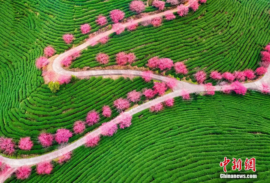 Ces jours-ci, après la floraison de cerisiers plantés au milieu de champs de thé, un ruban rose est apparu au sein des paysages verts de la ville de Zhangping, dans la province du Fujian. Beaucoup de touristes s’y sont rendus pour admirer cette magnifique scène printanière.