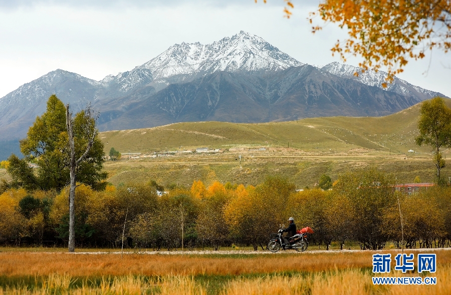Pendant la saison dorée du mois d'octobre, on trouve le comté de Qilian caché au milieu des forêts, perché dans les montagnes comme un petit bourg suisse embrassé par les Alpes. On y aper?oit de majestueux sommets montagneux recouverts de neige et des feuilles dorées jaunies par le vent d'automne. Il ressemble à s'y méprendre à un monde tiré d'un conte de fées.