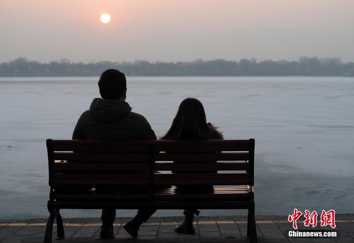 Photos prises le 10 février à Beijing, montrant la beauté d’un coucher de soleil au Palais d'été.